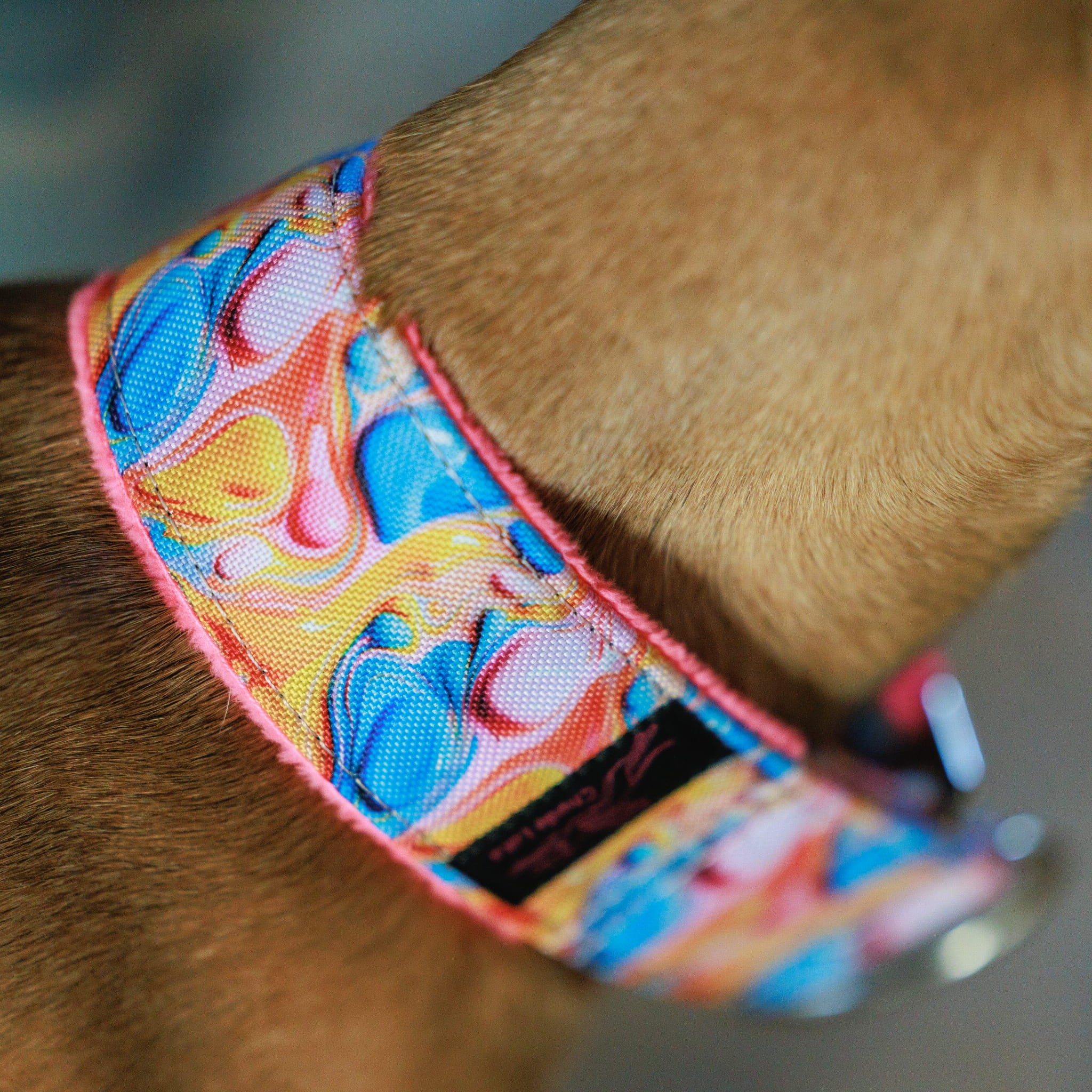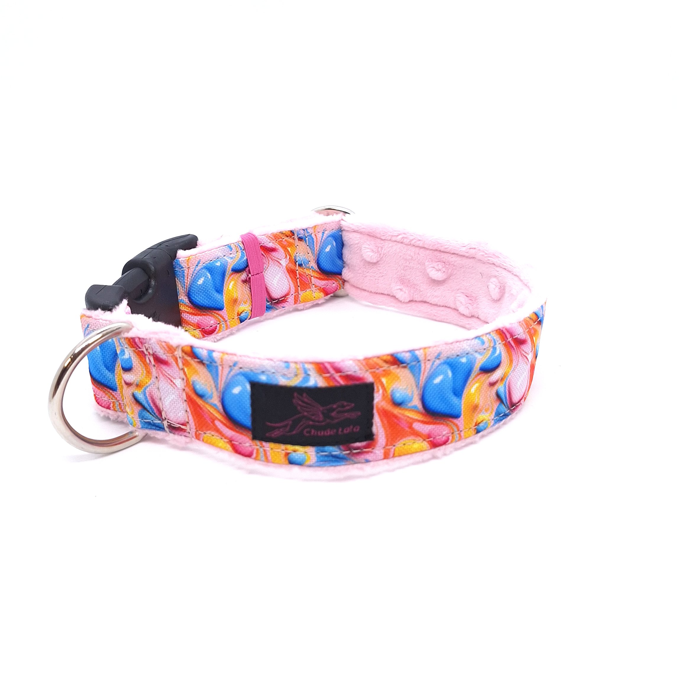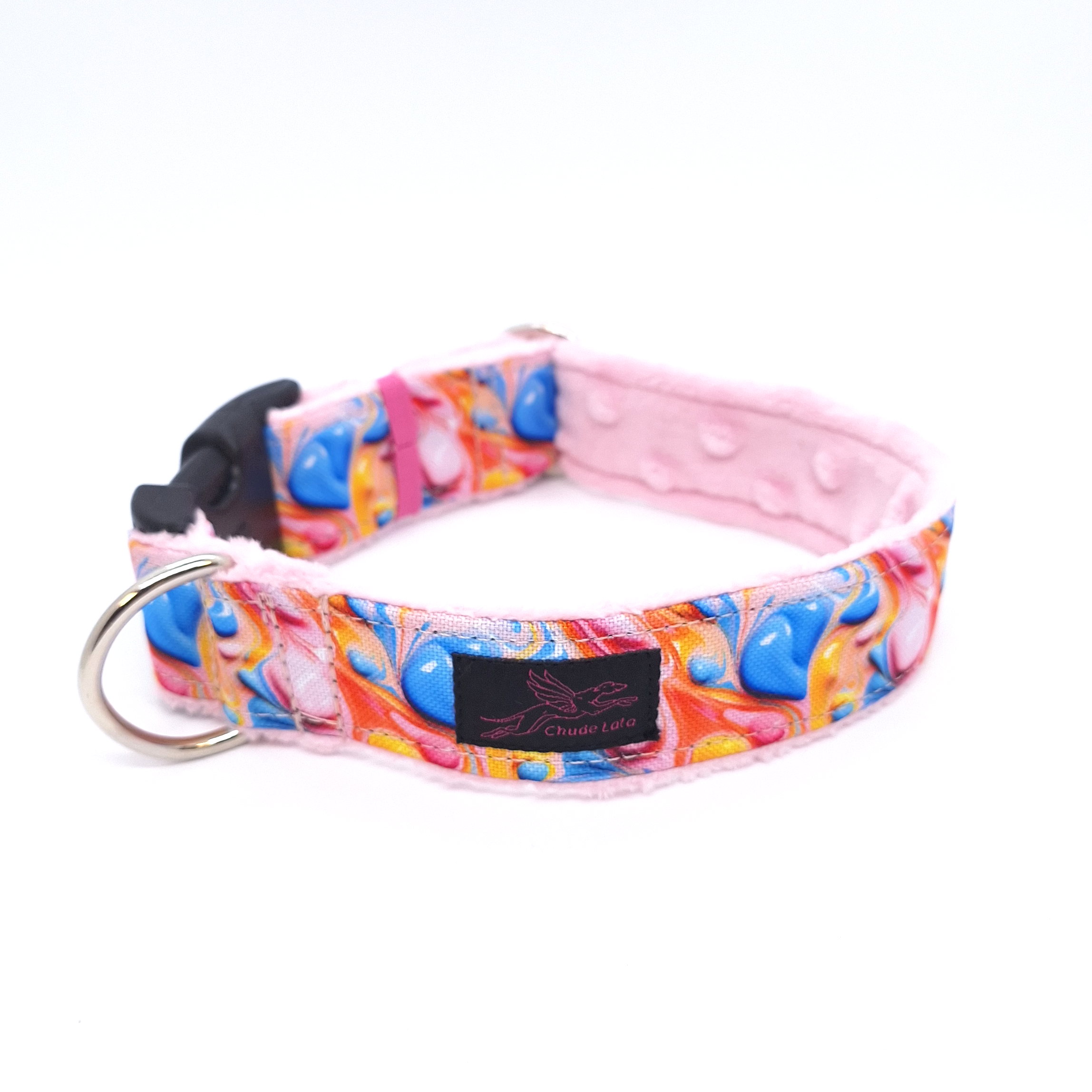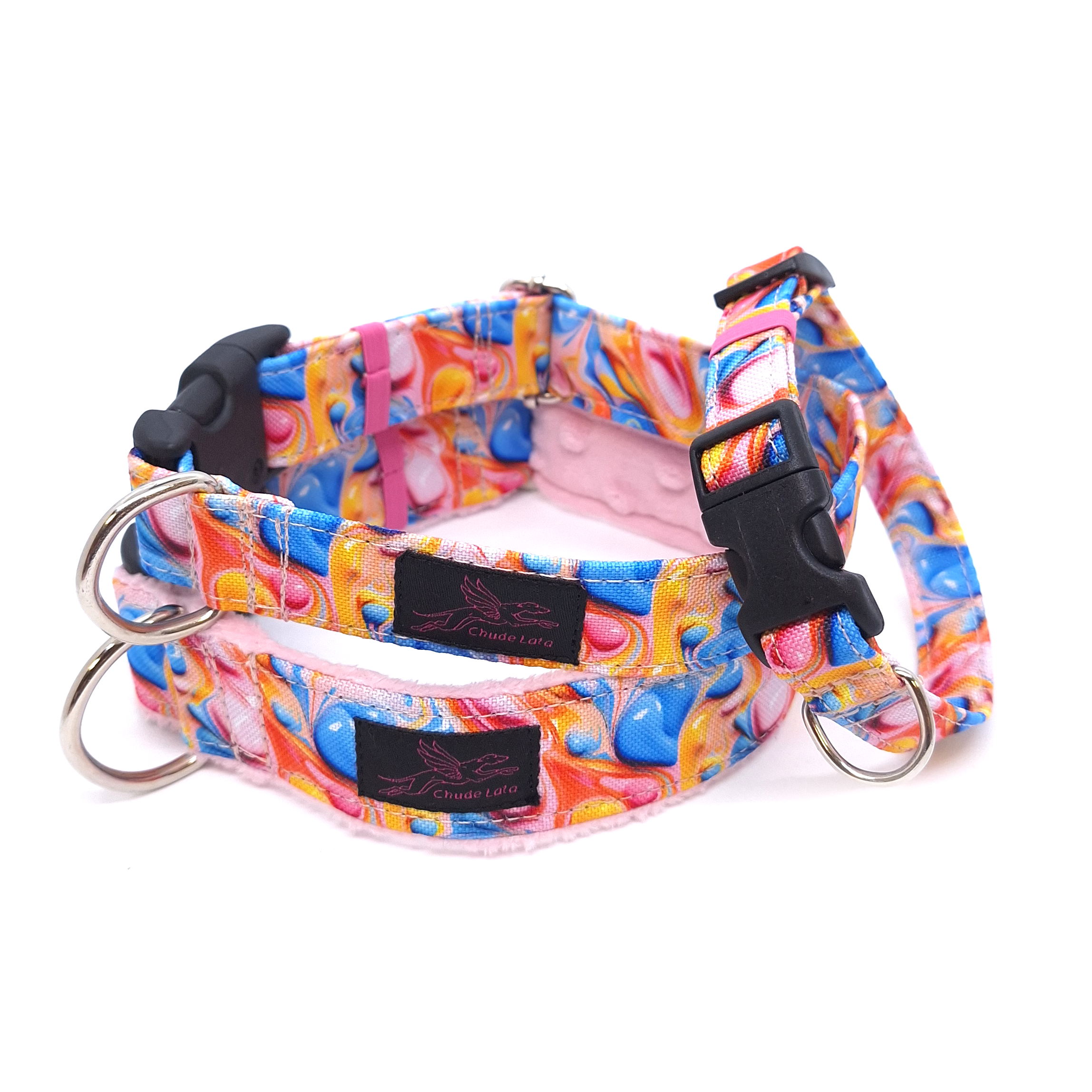 Nasza kolorowa obroża dla psa łączy wyjątkową trwałość z komfortem użytkowania. Wykonana z solidnej taśmy, obszytej wodoodporną tkaniną, zapewnia długą żywotność oraz wygodę dla Twojego pupila. Dzięki specjalnej powłoce materiał jest łatwy w czyszczeniu i przyjemny w dotyku.