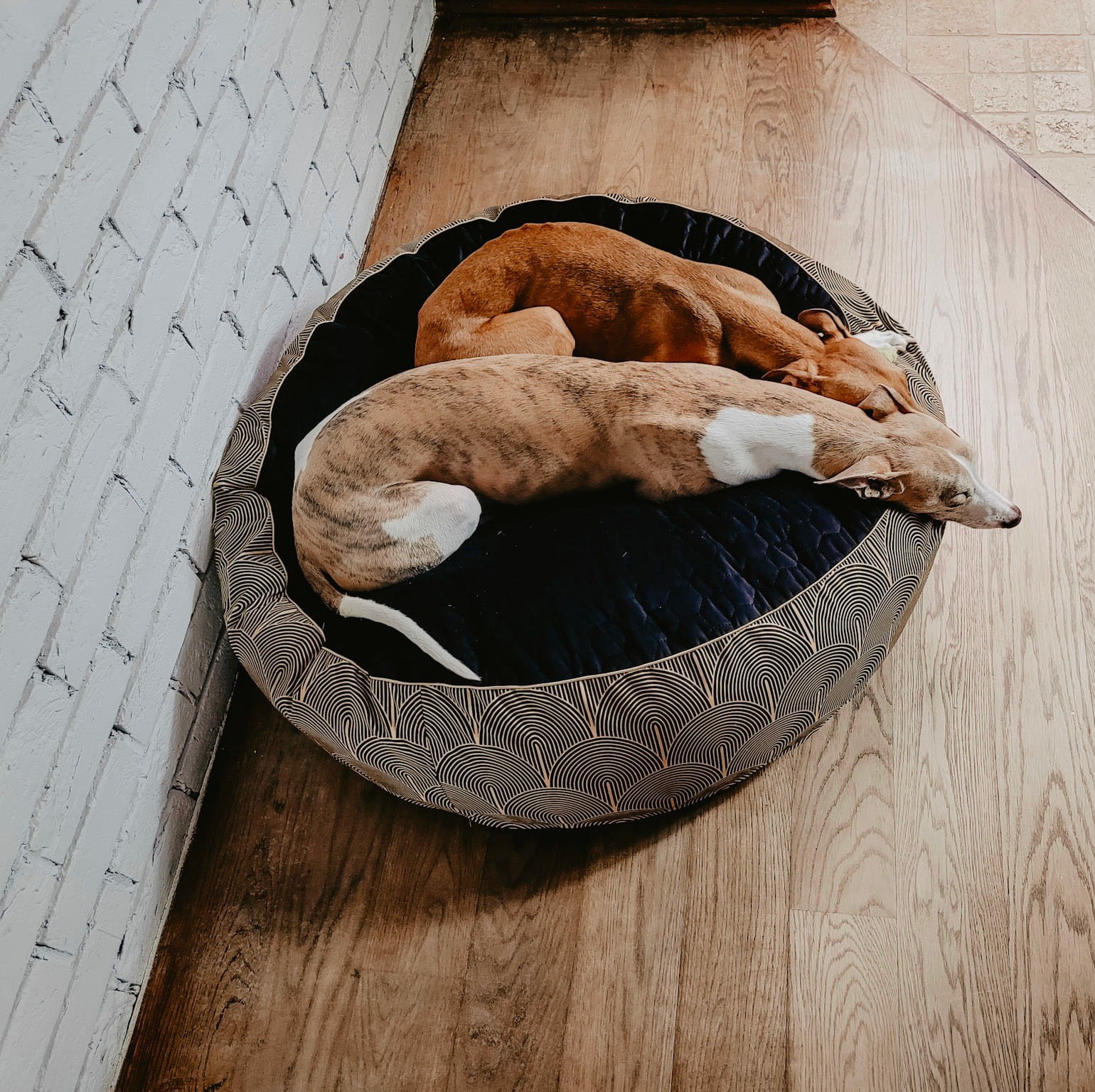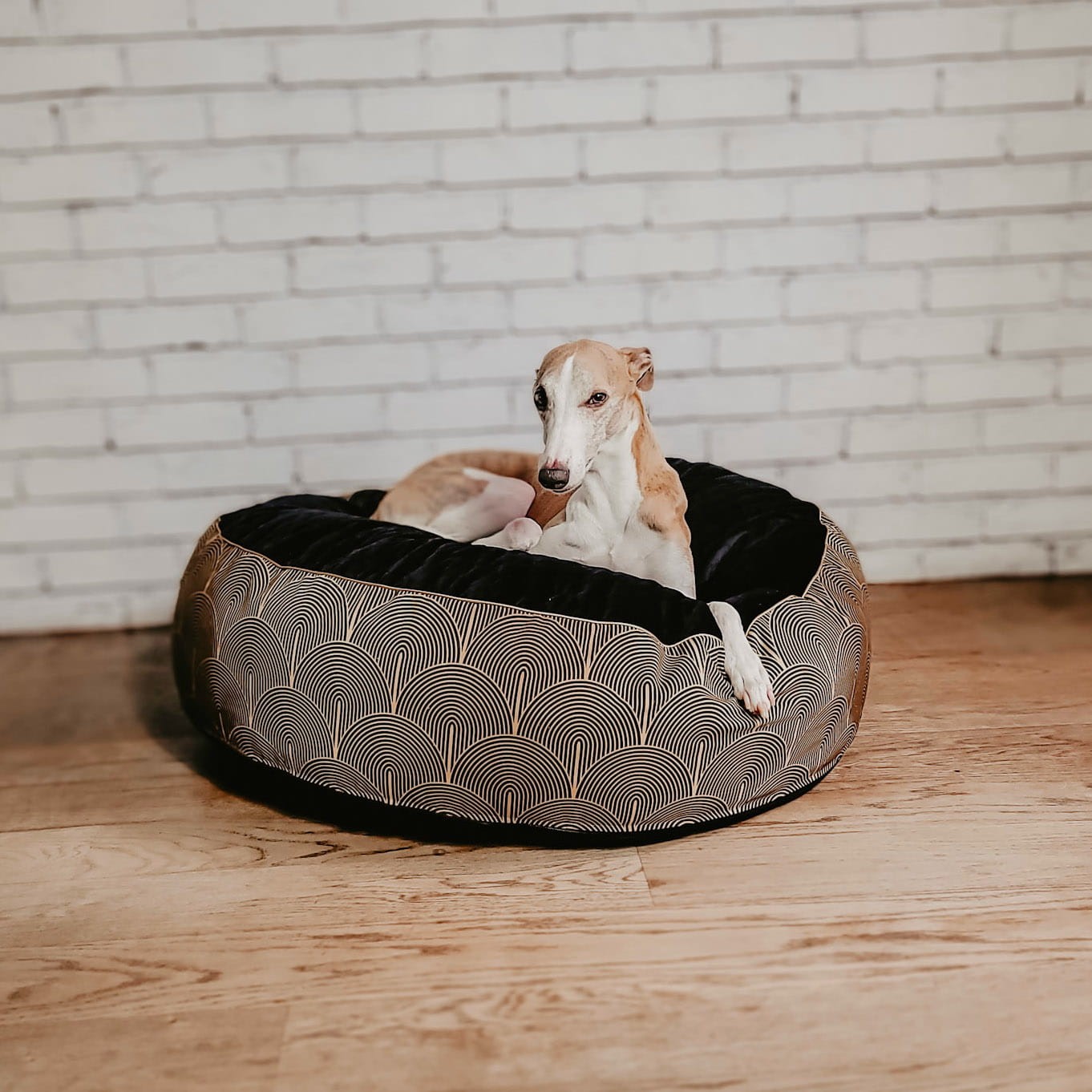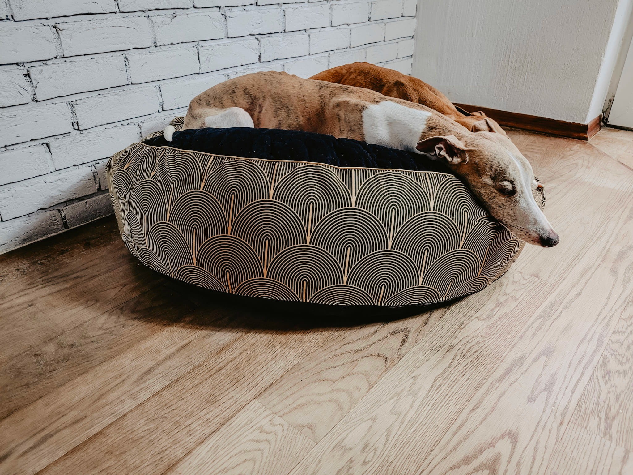 Możliwość personalizacji: na życzenie możesz dokupić pasujące poduszki dekoracyjne w tym samym wzorze, by legowisko idealnie komponowało się z wystrojem wnętrza.