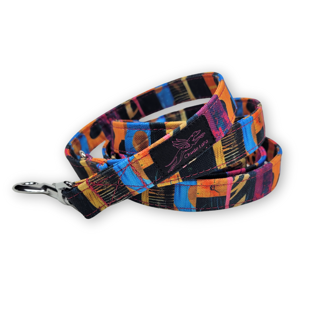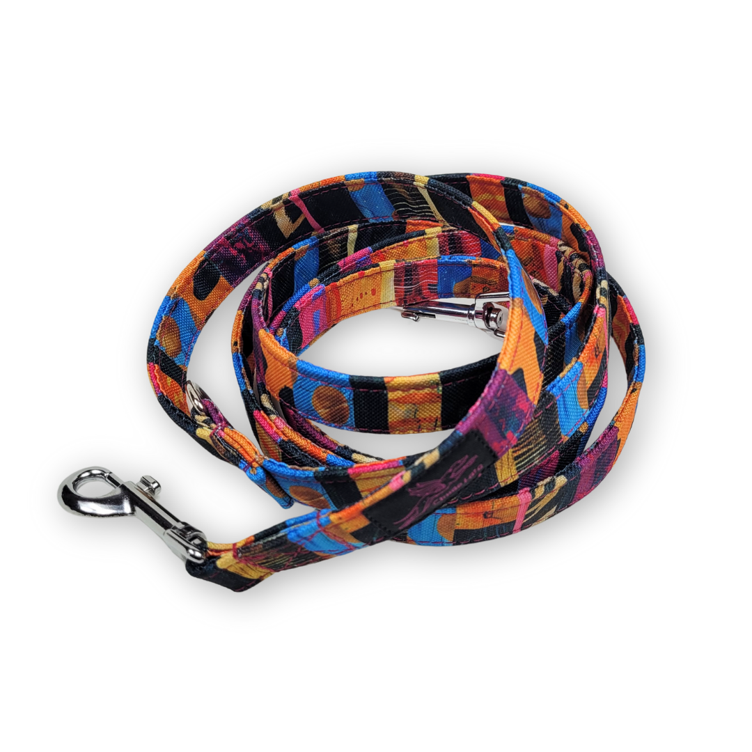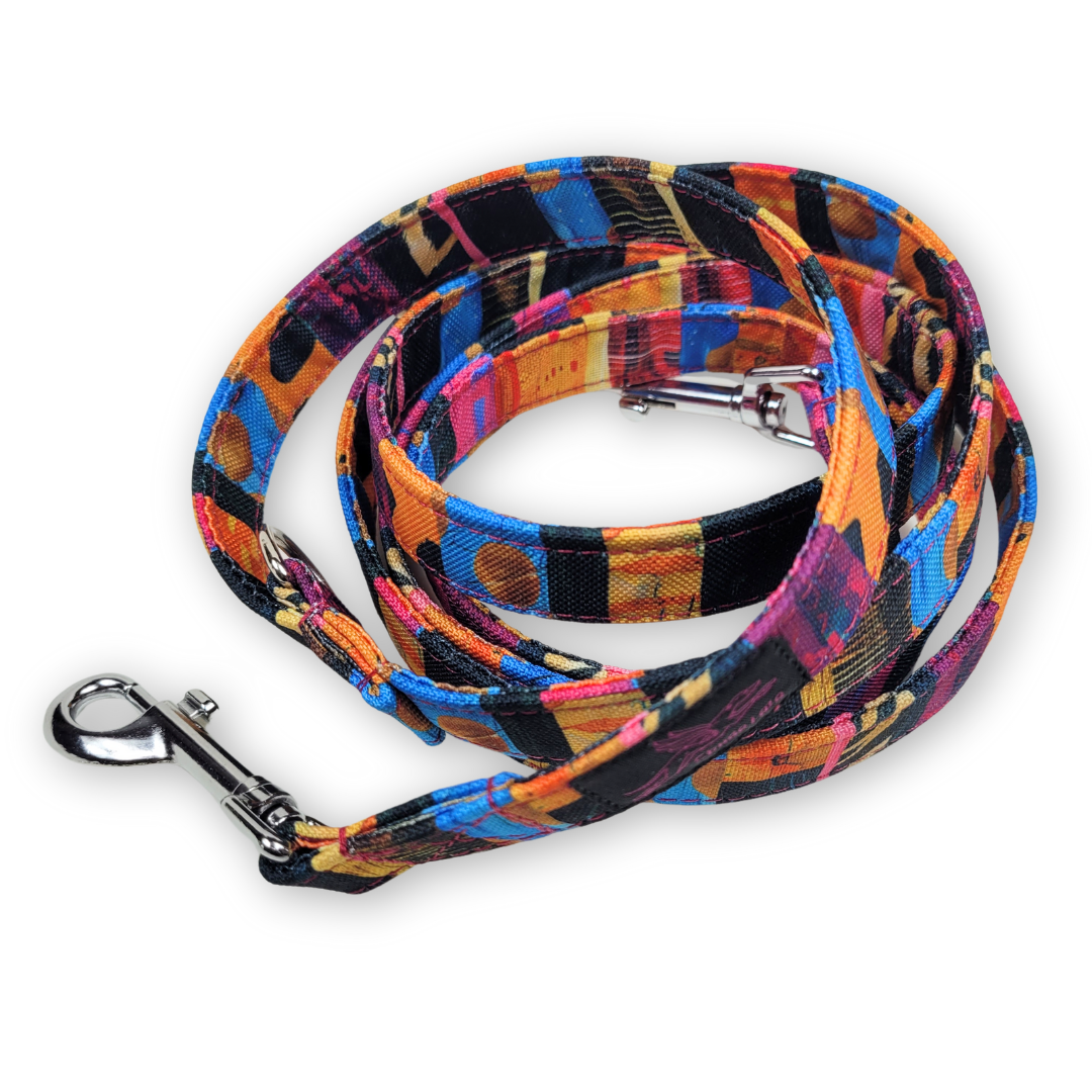 Smycz wykonana jest z wytrzymałej taśmy, obszyta jest kolorową tkaniną wodoodporną. Dzięki temu jest wytrzymała i łatwa w czyszczeniu – wystarczy przetrzeć wilgotną gąbką aby usunąć zabrudzenia ze smyczy.