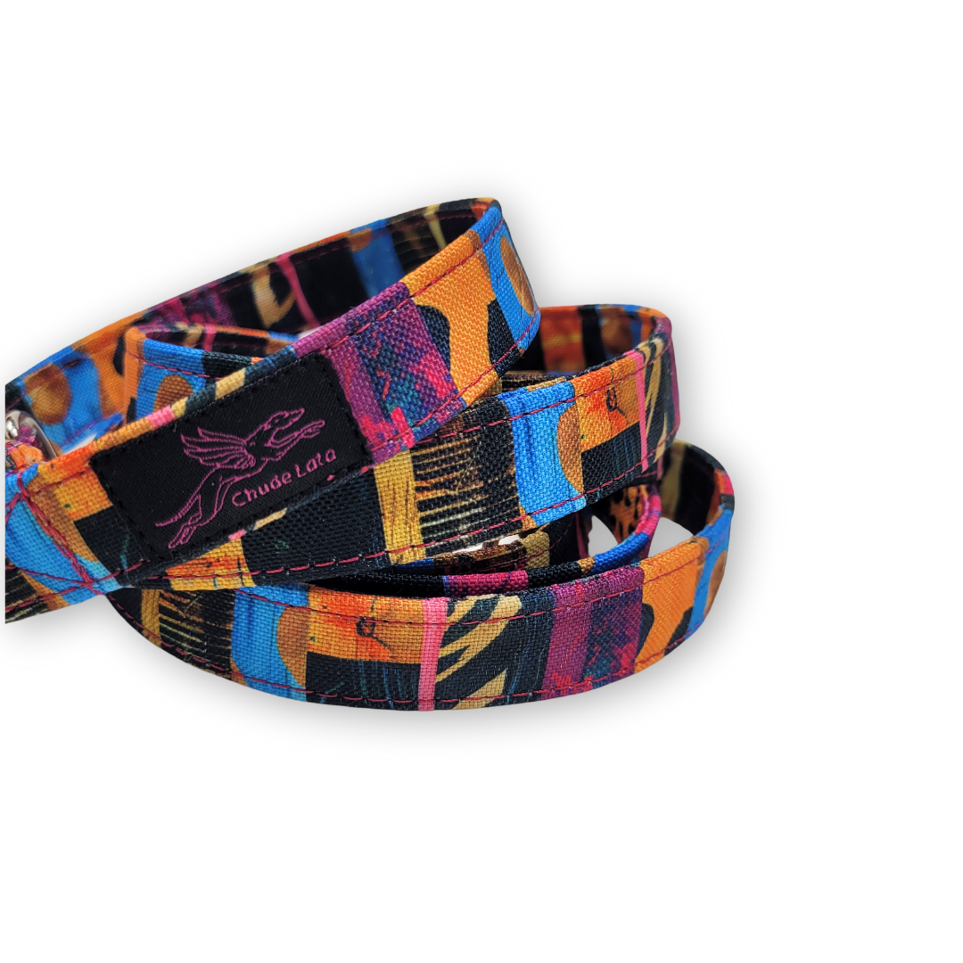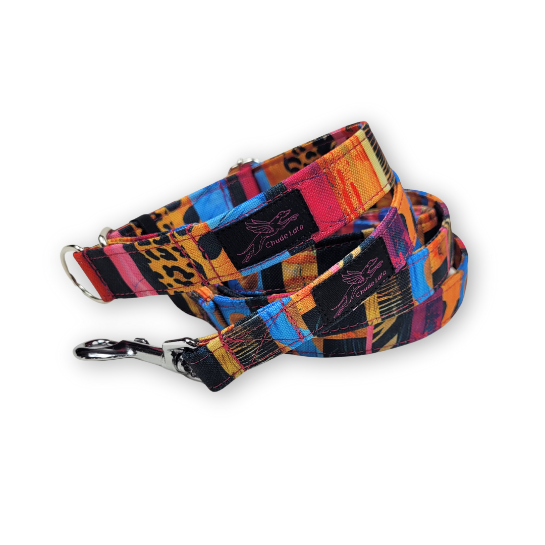 Smycze dla psów szyjemy standardowo w szerokości 2 i 2,5 cm – zwykle dobieramy szerokość taśmy do gabarytów psa.