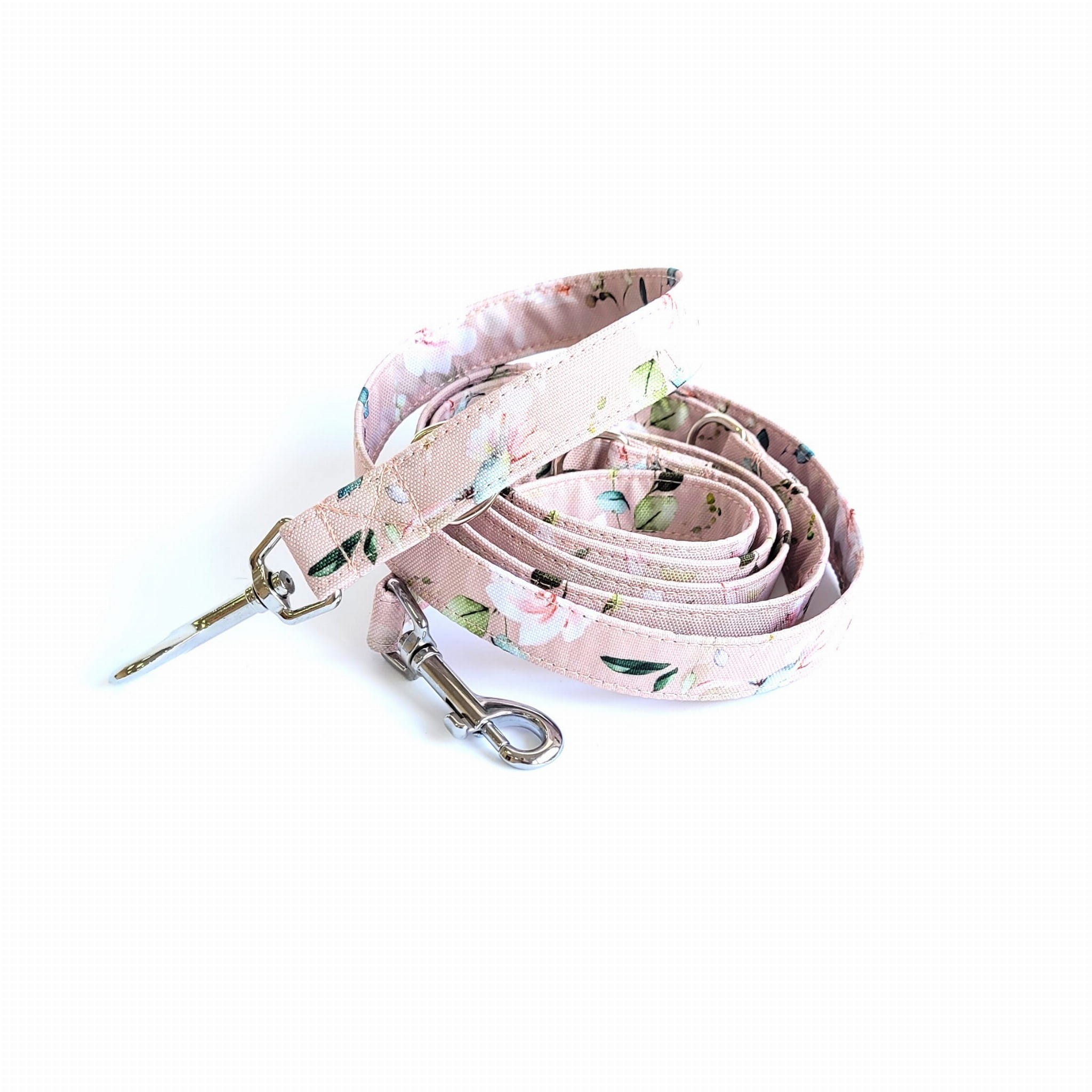 Smycz wykonana jest z wytrzymałej taśmy, obszyta jest kolorową tkaniną wodoodporną. Dzięki temu jest wytrzymała i łatwa w czyszczeniu – wystarczy przetrzeć wilgotną gąbką aby usunąć zabrudzenia ze smyczy.