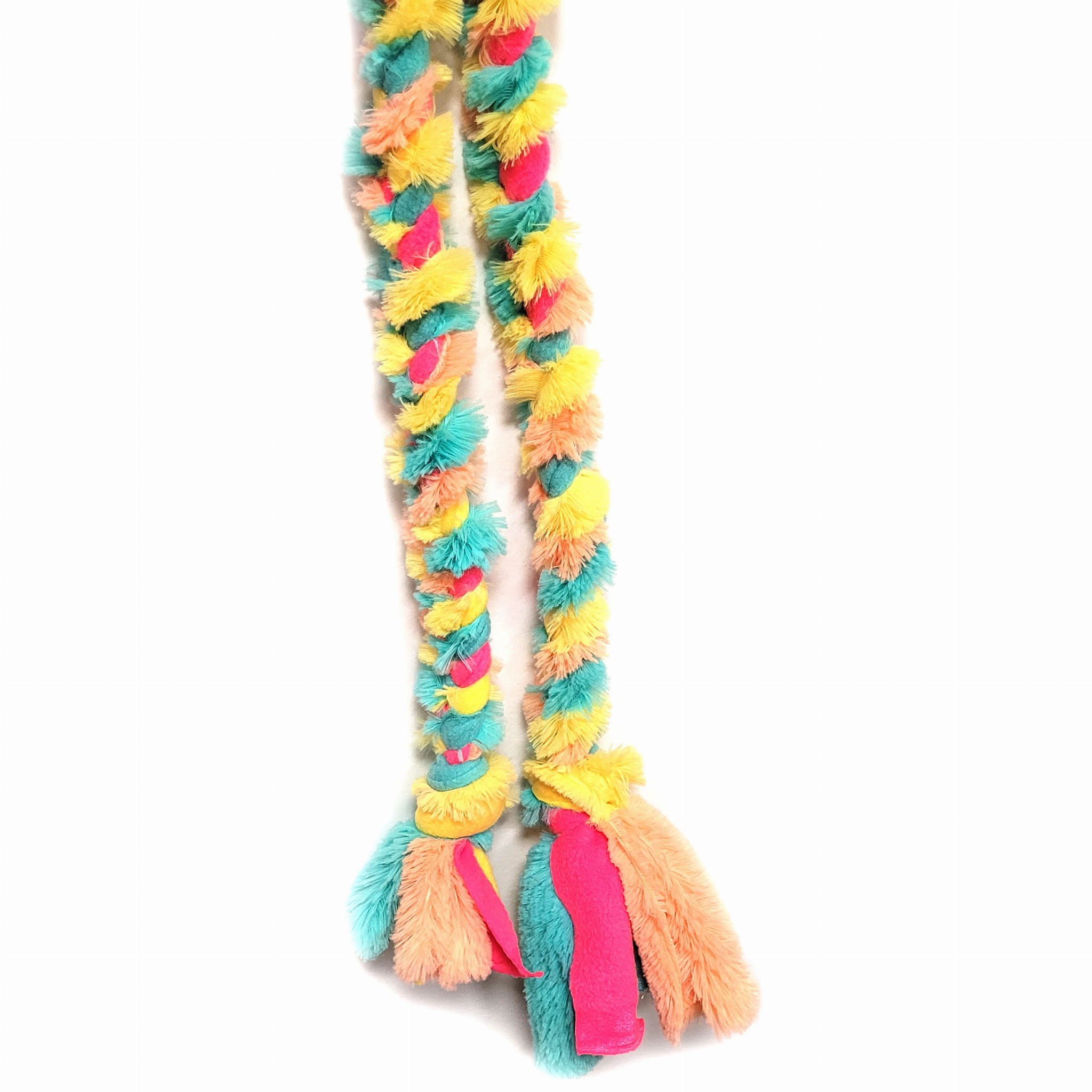 Włochaty szarpak dla psa wykonany jest z polaru oraz z dzianiny futerkowej.