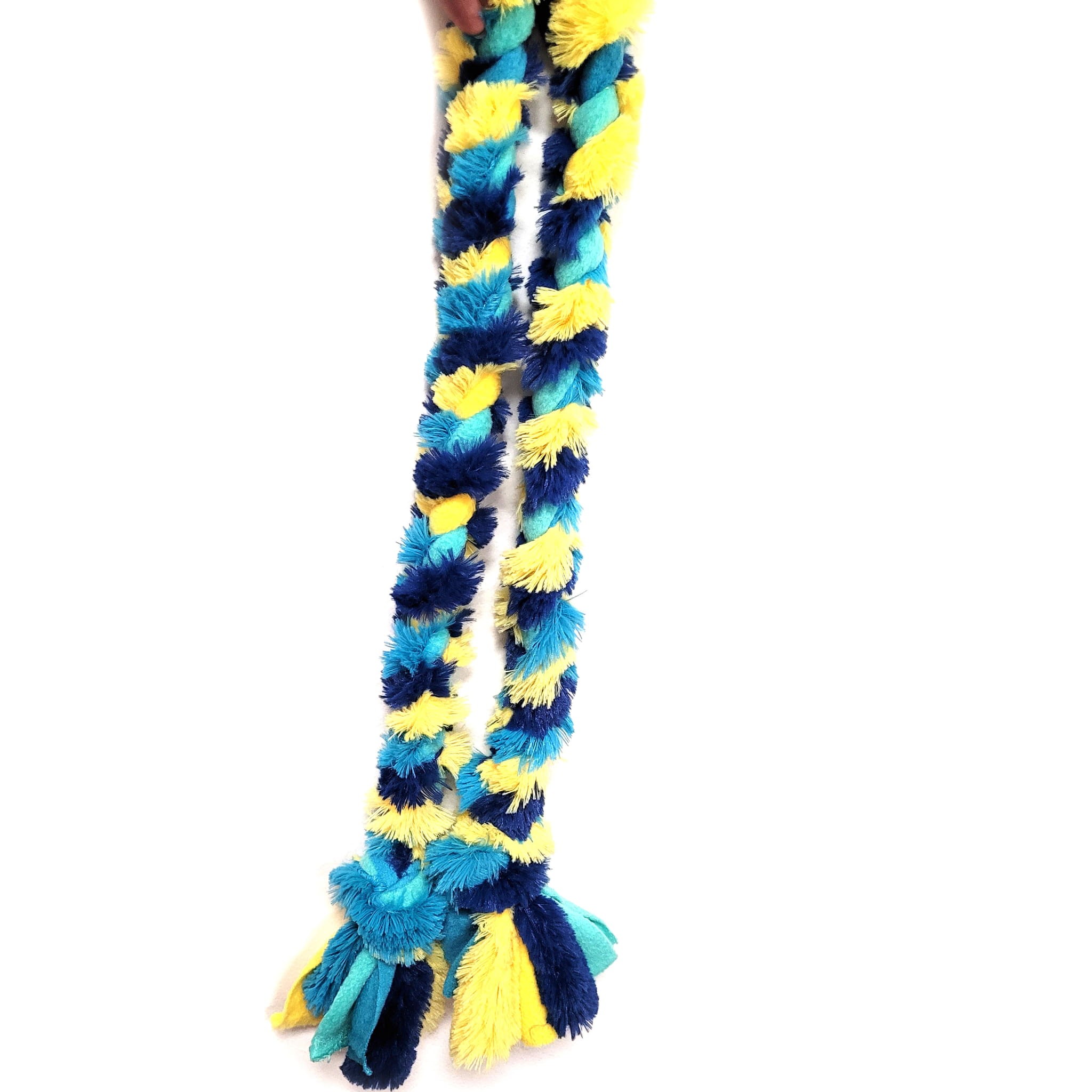 Włochaty szarpak dla psa wykonany jest z polaru oraz z dzianiny futerkowej.