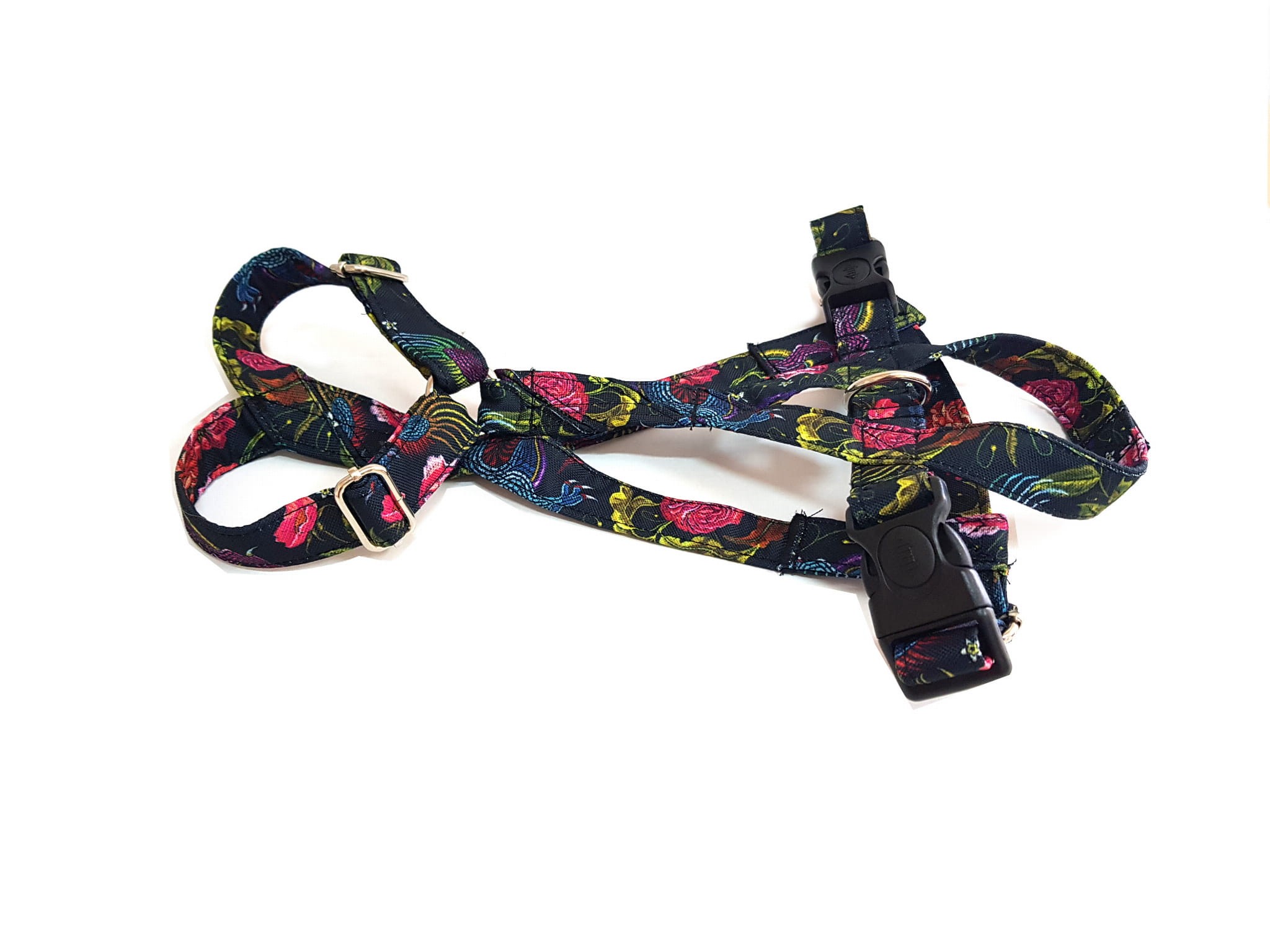 Szelki uszyte są z wytrzymałej taśmy o szerokości 2, 2.5 lub 3 cm (szerokość taśmy dopasowujemy do rozmiaru szelek) obszytej kolorową wodoodporną tkaniną. Na życzenie możemy podszyć szelki pianką neoprenową – polecamy to w przypadku, gdy szelki mają służyć do ciągnięcia lub gdy pies jest wyjątkowo wrażliwy – we wszystkich innych wpadkach sugerujemy rezygnację z podszycia ponieważ dzięki temu szelki są lżejsze i lepiej dopasowują się do pieska.