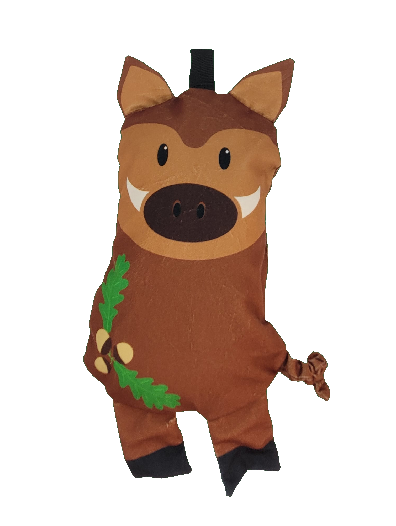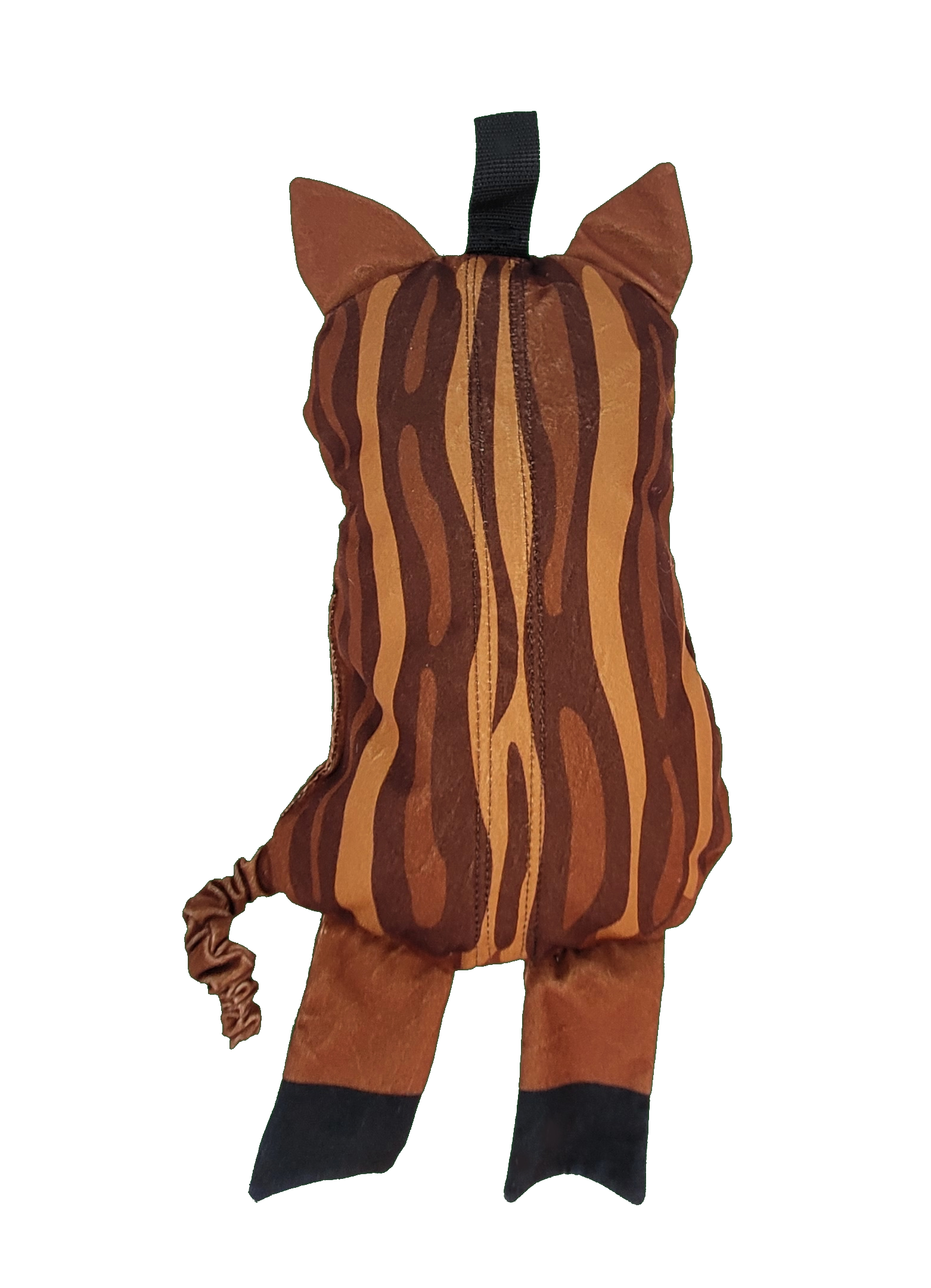Zabawka welurowa wykonana jest z tkaniny tapicerskiej, wzmocniona od wewnątrz grubą tkaniną kaletniczą. Wypełniony jest hypoalergicznym sztucznym puchem.